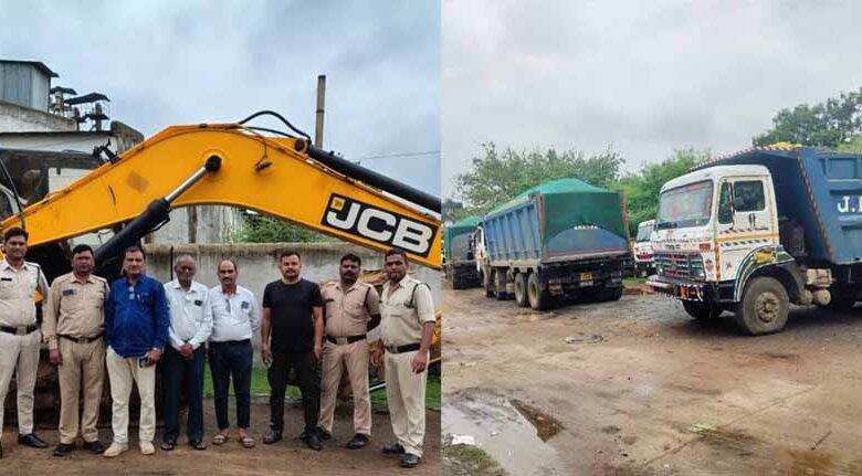 अवैध रेत उत्खनन के खिलाफ बड़ी कार्रवाई, अवैध रेत खनन में लगी मशीन और 7 हाईवा जब्त