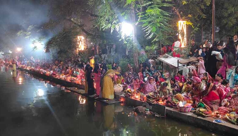 आमातालाब के घाट पर उगते सूर्य को छठ व्रतियों ने दी उषा अर्घ्य देकर 4 दिवसीय पवित्र अनुष्ठान का समापन किया