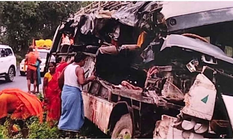 देवघर में भीषण बस हादसा: चालक को आई झपकी, टकराने के बाद ईंटों के ढेर में समाई बस