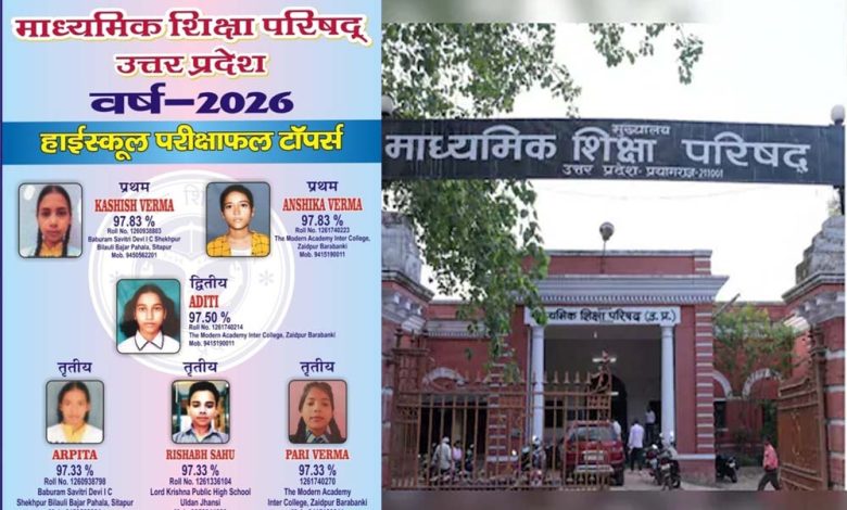 UPMSP ने आज साल 2026 की हाईस्कूल (10वीं) और इण्टरमीडिएट (12वीं) परीक्षा का परिणाम एक साथ जारी कर दिया है. परिषद के सचिव भगवती सिंह ने शाम चार बजे प्रयागराज मुख्यालय से प्रेस कॉन्फ्रेंस के जरिए नतीजों की घोषणा की. इस साल 10वीं में 90.4% और 12वीं में 80.32% छात्र पास हुए हैं. अब यूपी बोर्ड की परीक्षाओं में शामिल हुए 53 लाख से ज्यादा छात्रों की किस्मत का फैसला हो गया है. यूपी बोर्ड की 12वीं क्लास की परीक्षा में 97.60% सीतापुर की शिखा वर्मा ने टॉप किया।