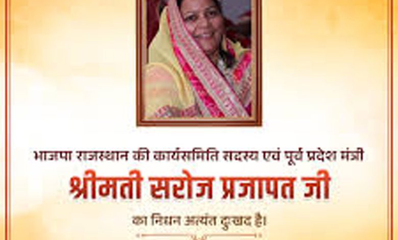 डीडवाना निवासी और पूर्व प्रदेश मंत्री सरोज प्रजापत के निधन से राजस्थान भाजपा में शोक